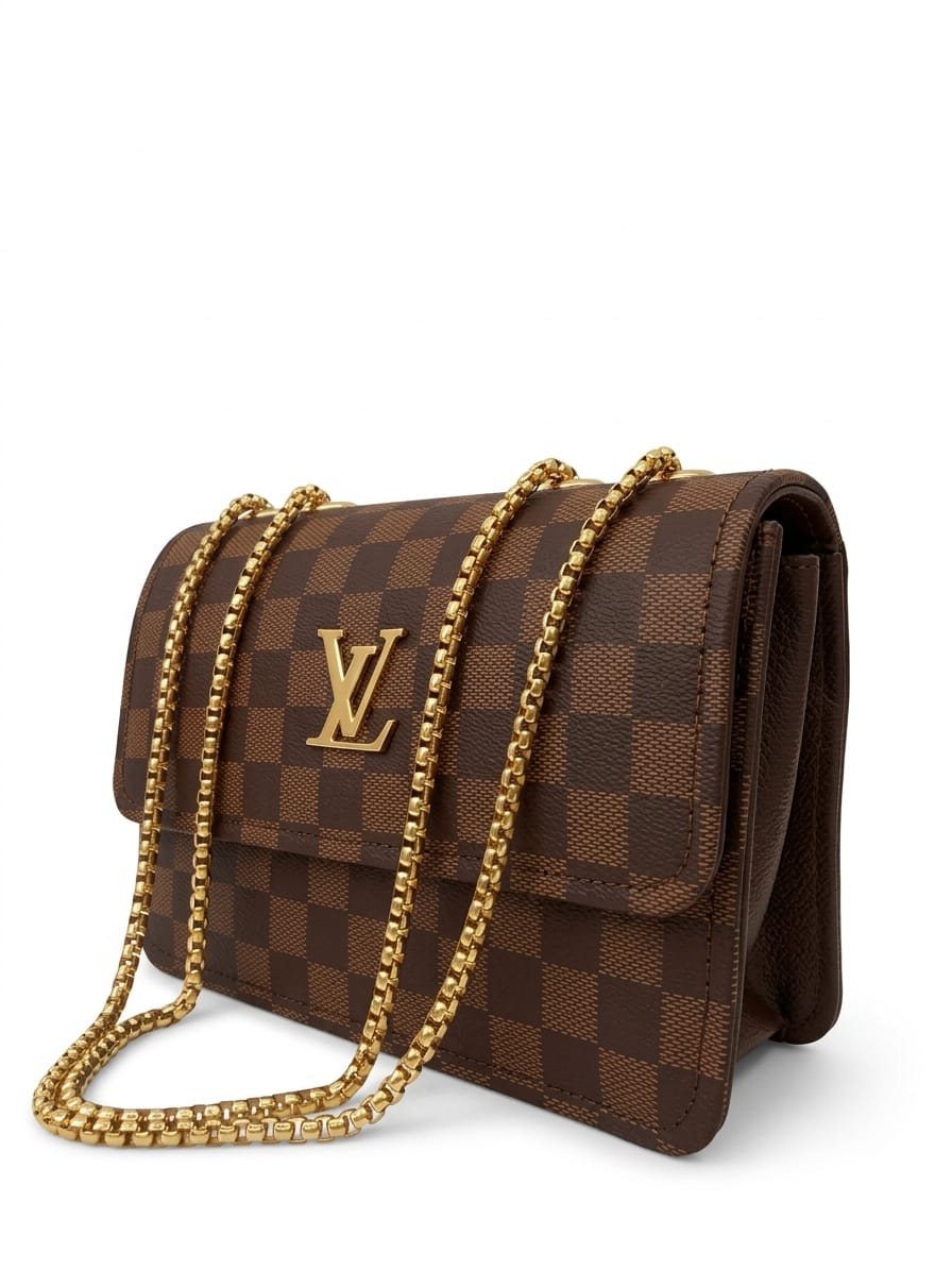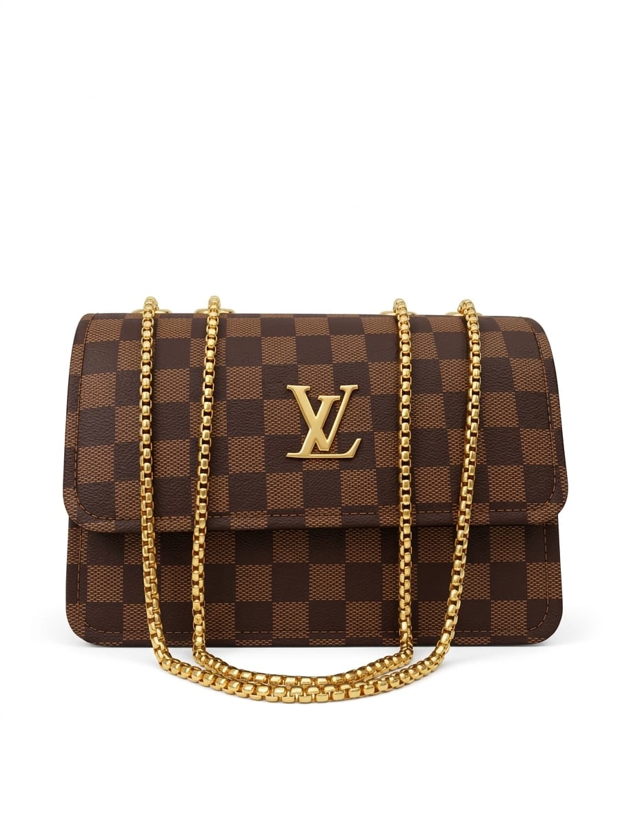 A stylish shoulder bag with a timeless brown checkered pattern and sleek chain strap. Designed to add a premium touch while keeping your look simple and refined.